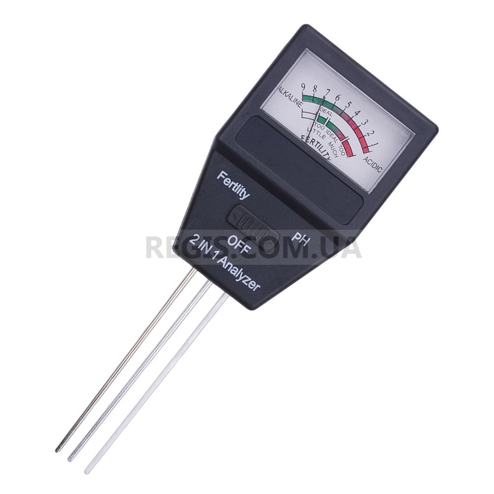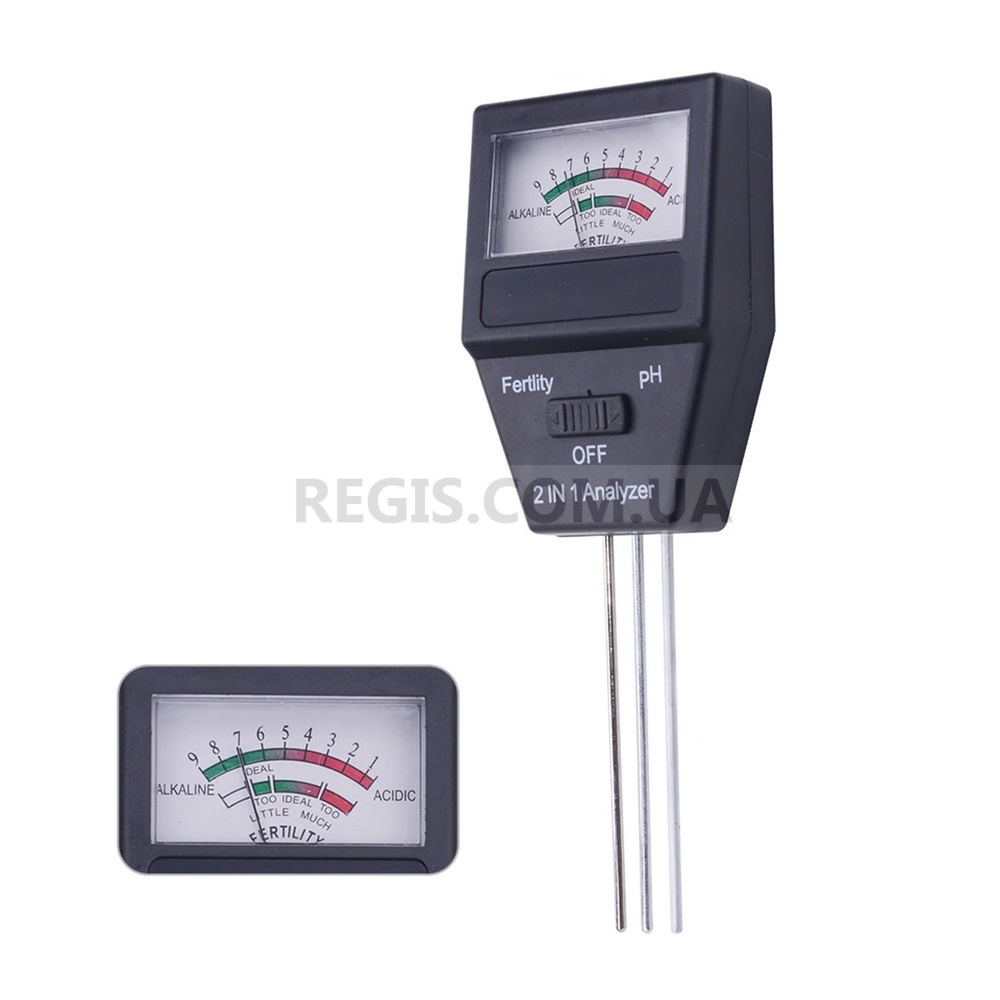 ETP-307 (2-в-1) - это комбинированный прибор для определения кислотности и плодородия почвы. Механический прибор работает в 2-х режимах: режим pH - для измерения pH почвы, и режим Fertility - для определения плодородия грунта. Выбор режима измерения осуществляется переключателем на лицевой панели прибора.